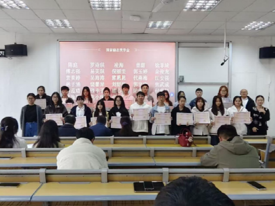 随后,刘敏、胡敏、涂伟与辅导员为荣获国家奖学金、国家励志奖学金、院级“最美大学生”(含各单项之星)及“优秀共青团员”称号的同学颁奖。
