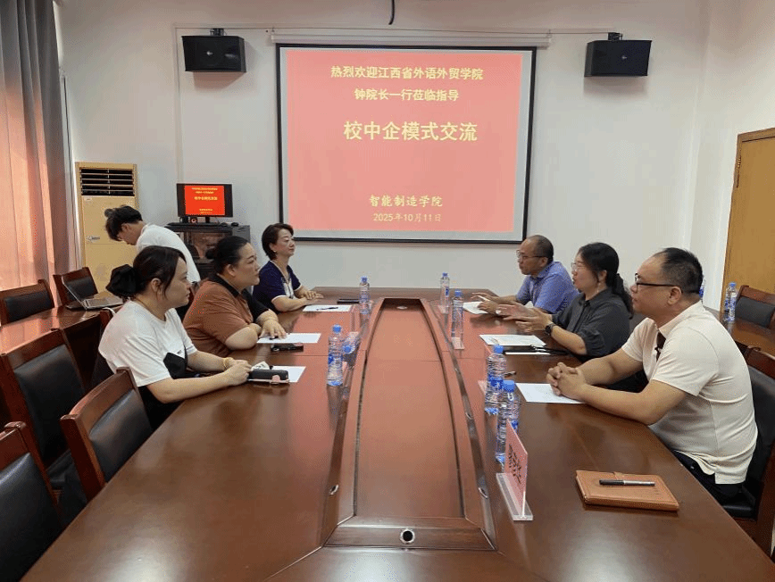 此次交流不仅让江西省外语外贸学院全面了解了智能制造学院“校中企”模式的实践经验,更搭建起我校与企业、兄弟院校三方合作的沟通桥梁。
