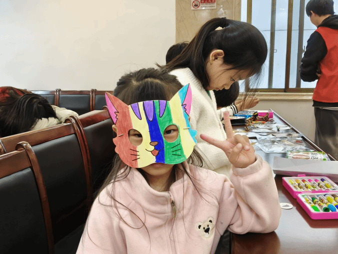 活动伊始,志愿者们投入到课业辅导中,耐心细致地为孩子们讲解作业难题,帮助他们梳理知识点,培养良好的学习习惯。在志愿者们循循善诱的指导下,孩子们逐步攻克学习难点,顺利完成了课业。随后的创意美术环节中,志愿者们引导孩子们在面具上挥洒创意,用五彩斑斓的颜料绘制出独一无二的作品。在图画填色、立体拼图等活动现场,孩子们欢声笑语不断。此次课程不仅锻炼了孩子们的动手能力,也激发了他们的想象力,让孩子们在寓教于乐的体验中收获成长。