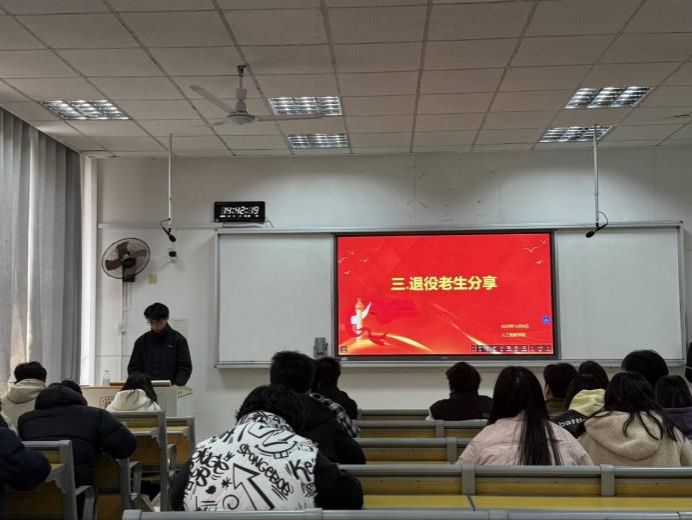 2025年12月9日,人工智能学院在3202教室举行2026年春季征兵启动仪式暨退伍学生经验分享会。活动通过政策宣讲与退伍复学学生的亲身讲述,展现军旅风采,激发青年学子携笔从戎、报效国家的热情。
