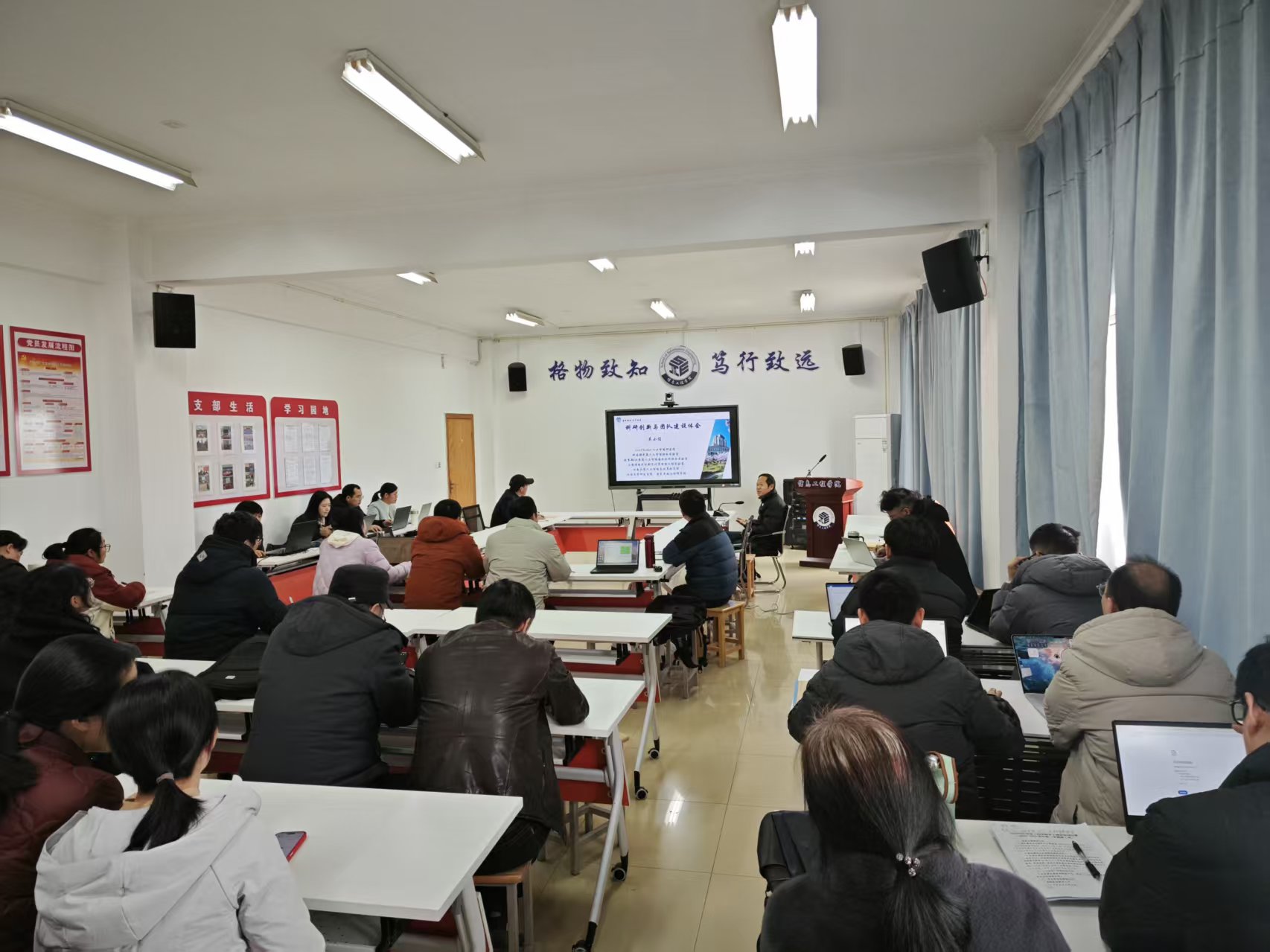 为进一步提升学院教师科研创新能力,助力国家自然科学基金项目申报工作,2026年3月5日,人工智能学院联合信息工程学院于弘德楼C522举办专题学术报告会。本次活动特邀江南大学吴小俊教授主讲,以《有组织科研创新与团队建设》为题开展专题分享,两院师生齐聚现场参与学习交流。
